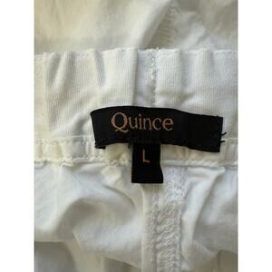 The Quince women's pajama straight leg pant in size large is a comfortable and stylish choice for sleepwear. Made from lightweight cotton material, these solid white pants feature a drawstring closure for a customizable fit. Perfect for all seasons, these straight leg pants offer a classic and versatile style for a good night's sleep.