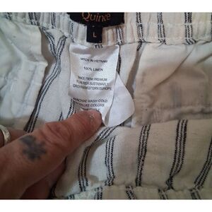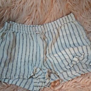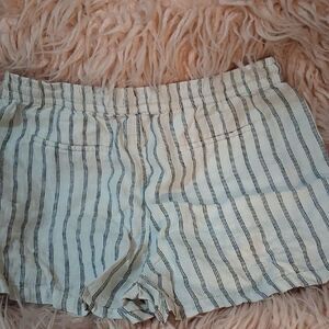 Quince Blue and White Striped High Waist 100% Linen Shorts Size Large