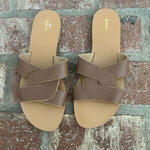 Quince Brown Leather Italian Leather Cutout Slide Sandal size 9.5 NWOB