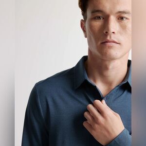 Quince Flowknit Breeze Performance Long Sleeve Polo blue size Medium NWT in pkg