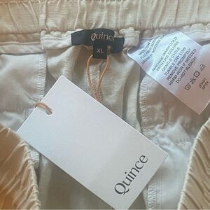 Quince New With Tags 100% Linen Wide Leg Pants Size XL. Excellent new condition. Elastic waistband with drawstring. 2 front and back pockets. 100% linen and machine washable. Measures approximately waist 33", inseam 30.5", rise 13", cuff side to side 11".