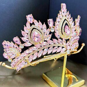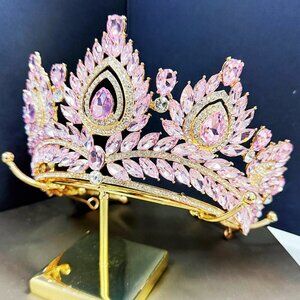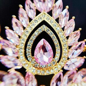Color: Pink Crystal, rhinestones and Gold-plated crown.