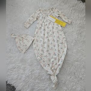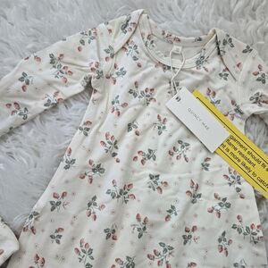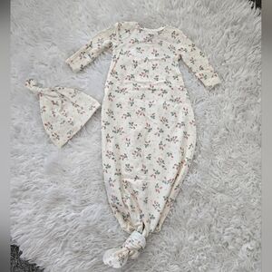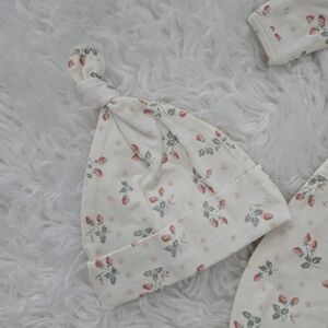 Quincy Mae Knotted Baby Gown + Hat Set. Strawberries. One Size. New.Knotted ba
