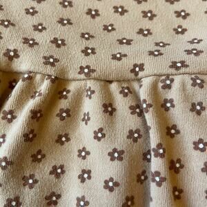 Long sleeve jersey organic cotton dress. Tan color with "ditsy bloom" brown flower print.