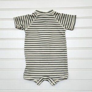 Quincy Mae Sea Green Stripe Boys Zip Rashguard Swimsuit, size 3-6 months, having a hard time getting the exact shade, earthy/sea gray green and cream, UPF 50+, excellent condition.