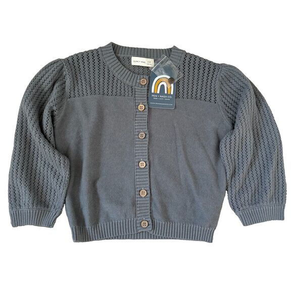 Quincy Mae gray pointelle knit cardigan sweater NEW Kids 2/3 puff sleeve organic