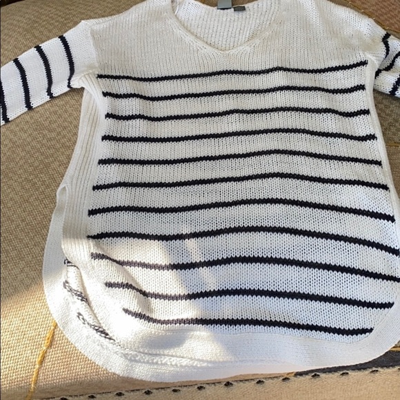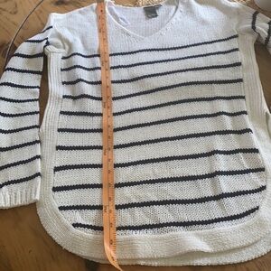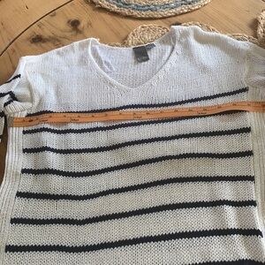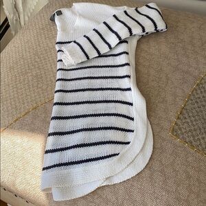 Knit sweater navy blue and white strip NWOT size S length 26 width 18”