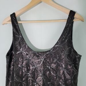 Quinn Black Bodice Full Sequin Crewneck Sleeveless Party Dress Size Small