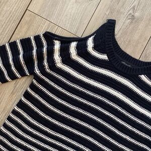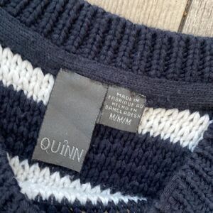 Quinn Medium Knitted Sweater with Peek a Boo Shoulders Navy and White