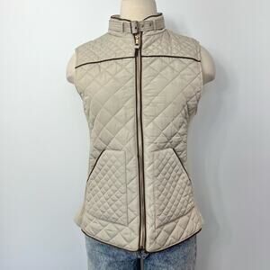 Quinn Quilted Sleeveless Full Zip Vest Cream/Beige | Size: Small
