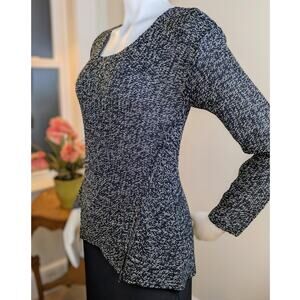 Quinn Sweater Small Black White Heather Zipper Accents High Low Scoop Neck