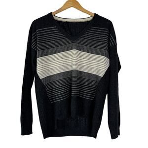 Quinn Sweater Womens Small Gray Striped 100% Cashmere Open Knit Academia Preppy