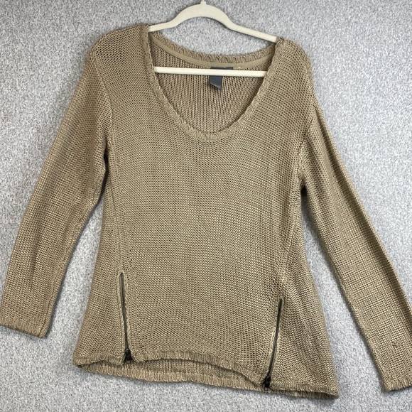 Quinn crew neck sweater M zipper accents taupe neutral minimalist edgy