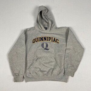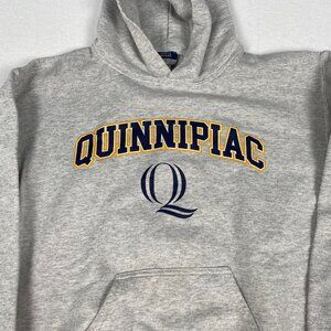 Quinnipiac University Spellout Logo Graphic Grey Hoodie Sweatshirt Small