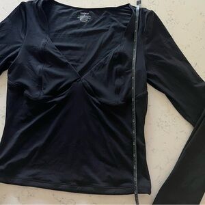 Quinsen Elegant Black Long Sleeve Deep V-Neck Stretchy Blouse Top Size Medium
