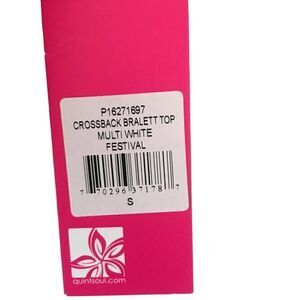 • Crossback bralette top, spaghetti straps with string tie across back.
