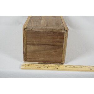 Beautiful wood box is heavy/solid and measures about 17.5" x 5.5" x 5.25".