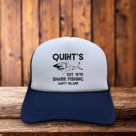 Quint's Shark Fishing Amity Island JAWS Mens Trucker Hat Navy Snapback Ball Cap