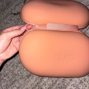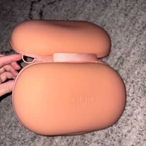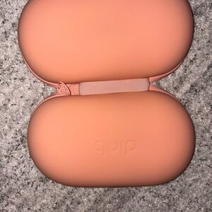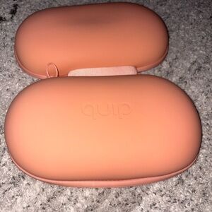 Quip travel case in a coral pink color. Perfect for storing your essentials on the go.