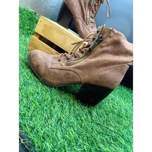 Quipd-Brown- Lace Up Booties- Size 9W. Chic and comfortable, these brown suede lace up booties with a cute block heel are perfect for adding a touch of style to any outfit. Easy lace up and in good condition, though the side zippers are a little tight. They are clean, gently worn and ready to style! Great value!!