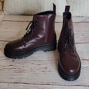 Quipid Burgundy Vegan Leather Platform Boots Size 10