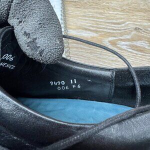 Elevate your formal wear with these sleek Quirelli black leather oxfords. Crafted in Mexico, these dress shoes feature a round toe and lace up closure for a polished look. The leather lining and upper material ensure durability and comfort all day long. Perfect for any occasion, these men's size 11 oxfords are a must-have addition to your wardrobe. The timeless style and black color make them versatile and easy to pair with any outfit. Don't miss out on the opportunity to own a pair of Quirelli's high-quality dress shoes.