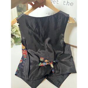 This Quirky Grandma core Christmas Presents Vest in size Medium is a vintage-style cotton vest designed for women. The multicolor vest features a button closure, lined interior, and a collarless design for a unique and festive look. The lightweight vest is perfect for adding a touch of Christmas cheer to any outfit, making it a fun and quirky gift for grandma during the holiday season.