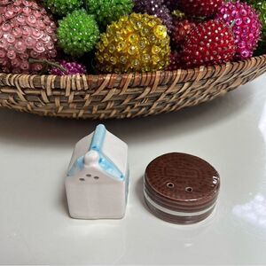 Quirky Vintage Milk and Cookie Oreo Ceramic Salt and Pepper Shakers Set