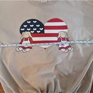 Quitman USA Patriotic Heart w Two Bunnies Graphic Tan Banded Bottom Pullover XL