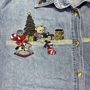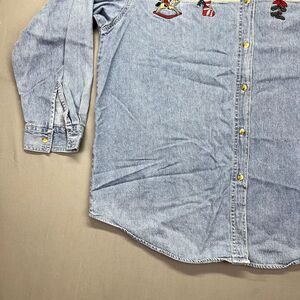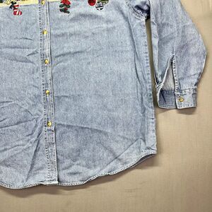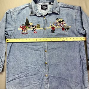 Quizz Again Shirt Womens Sz L Kittens Butterfly Blue Denim Long Sleeve Button Up