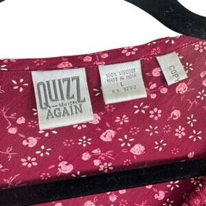 Quizz Again Vintage Pink Floral V-Neck 3/4 Sleeve Lightweight Viscose Blouse L