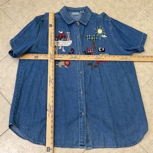 Quizz Woman Denim Shirt women's size 22 Short Sleeve Embroidered Noah's Ark