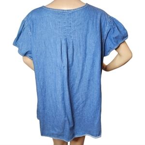 Quizz Woman Trends chambray short sleeve top. Pockets. Mother of pearl. Size 20.