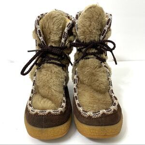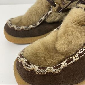 Quoddy Brown Suede Faux Fur Wool Lined Lace Up Moccasin Boots