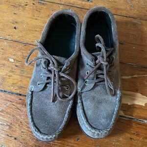 @bonbowie hi, these are the women’s moccasin brown suede lace up fat shoe. I’m not sure what size this would be in men’s. I can measure the insole if you’d like.