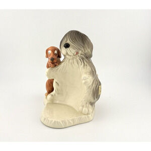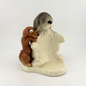 Quon Quon Porcelain Bobtail and Dachshund Hand-painted candle holder Japan 5,5"