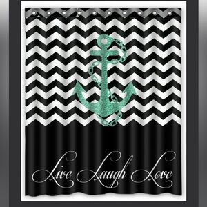 Quotes Live Love Laugh In Black Colorblock Chevron With Anchor Shower Curtain
