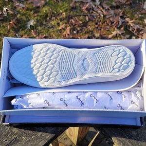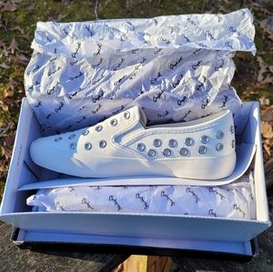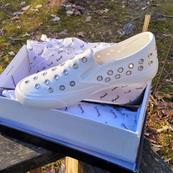 EUC. Really cute white slip-on with silvertoned grommets. 1" heel. Size 7, in original box.