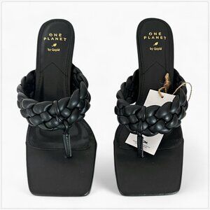 Qupid Black Braided JayLove-13S One Planet Vegan Thong Heel Sandals NEW 6.5