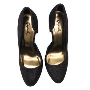 Qupid Black Sparkly Glitter Stiletto Pump Heels Size 7.5