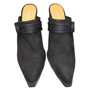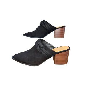 Qupid Black Suede Mules with Point Toe and 3" Heel/Suede Slip On Mules/Size 8.5