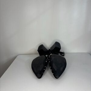 Qupid- Black Heels w/Ankle Straps & Silver Bubble Studs