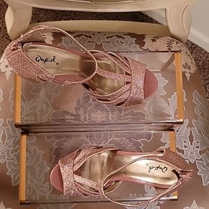 Qupid Blush Pink Sparkly T-Strap Platform Heels