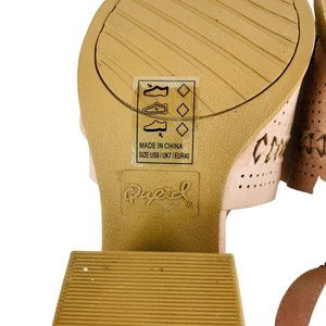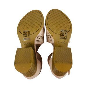 Qupid Boho Ankle Strap Open Toe Chunky Heels Pink Beige Sandals 9