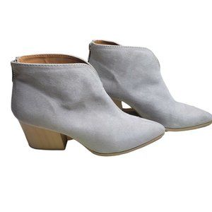 Qupid Bootie Gray Suede Point Toe ,Silver Zip Back Size 8