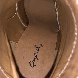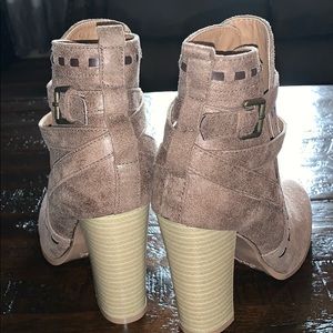 Brand new, never worn Qupid tan suede booties. Bought these at a boutique but never wore because the heel was a little too tall for me. So they are in perfect condition! I do not have the box because all of my shoe boxes got lost in a move. Size 7