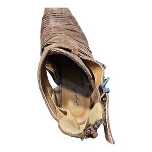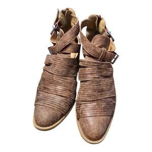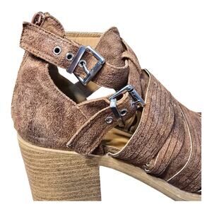 Qupid Brown Faux Suede Leather Stacked Heel Cut Out Buckle Boots ~ Size 9