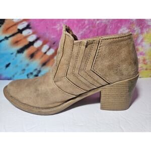 Qupid Distressed Suede Stitched Chevron Western Booties - Size 7