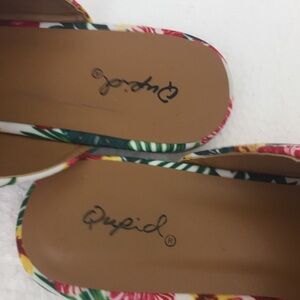Qupid Floral Sandals. Flats. Sz 8.5. Colors are. Green. Yellow. Red. Red. Bow. Materal. Pointi Toe.