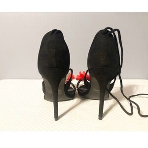 Qupid Fringe Wrap Tie-Up Heels Sz 6, NEW, Black & Red